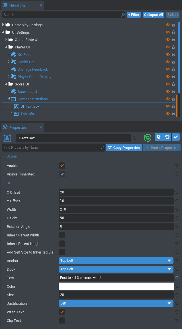 - Cherchez la section UI Text Box sous Game Instructions dans la Hierarchy.