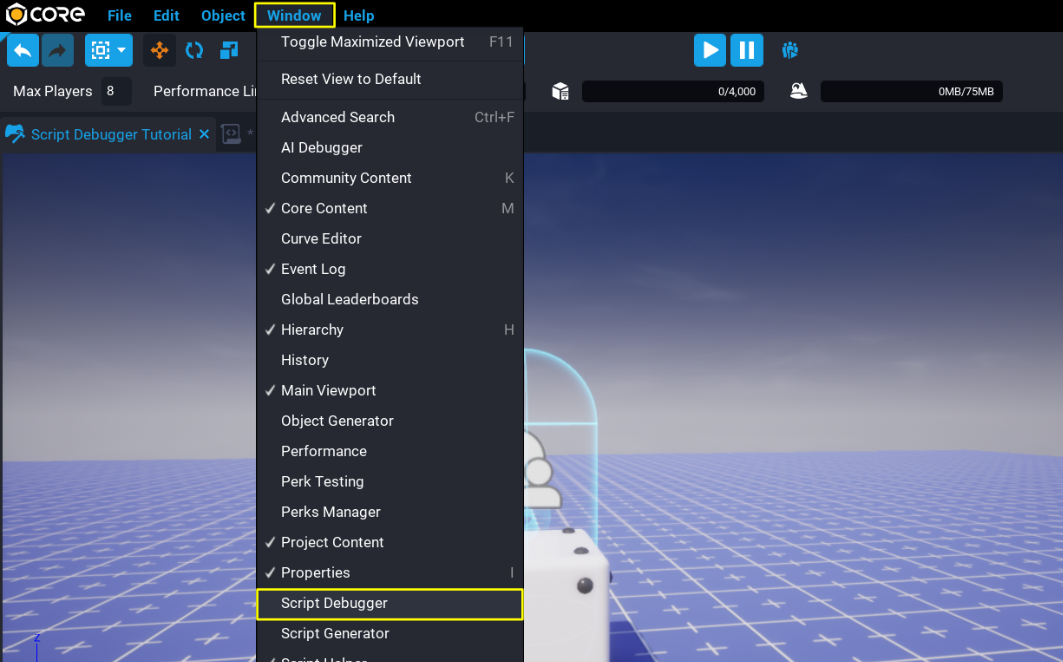 The Script Debugger can help narrow down which lines of code have issues or bugs by allowing creators to pause script execution and move specifically through different lines of Core Lua scripts.