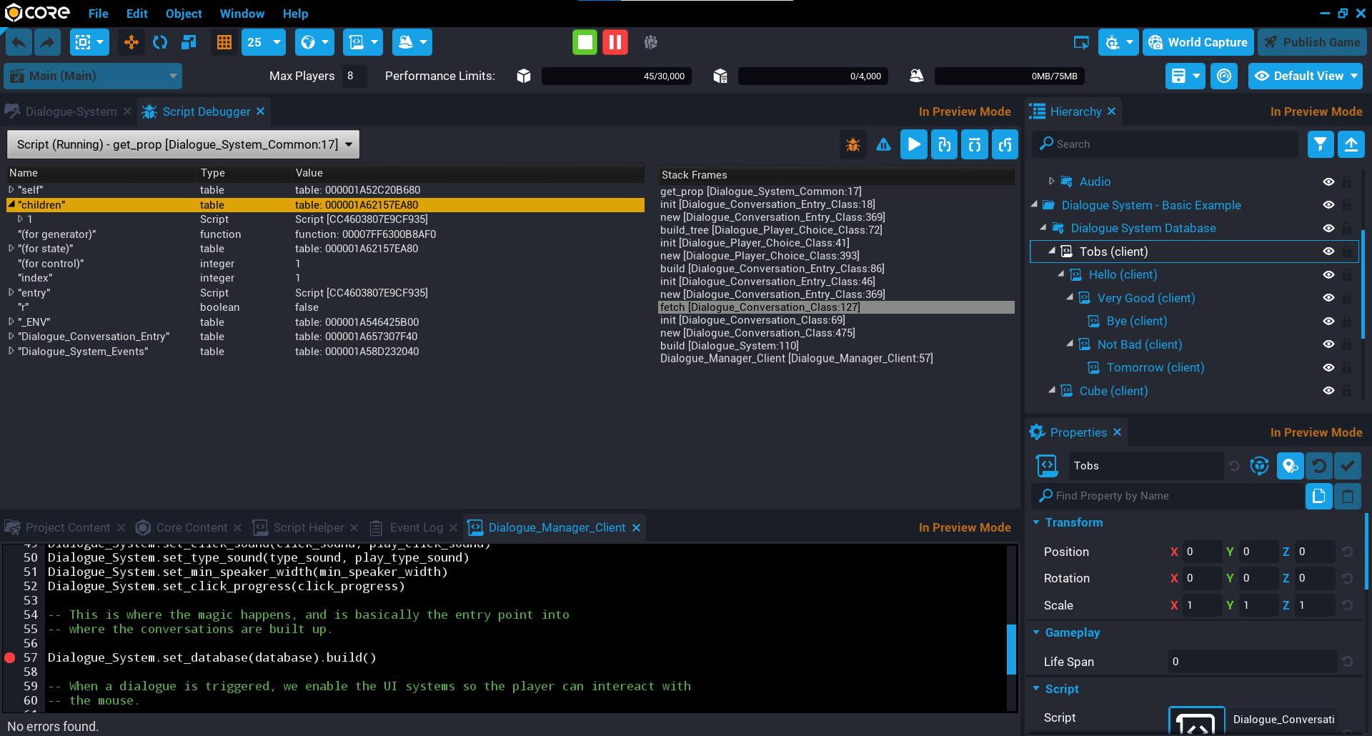 Intro to Scripting | Lua Scripting Tutorial | Advanced Scripting in Core | Performance Window | AI Activity Tutorial