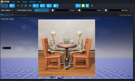 With the Blockchain API in Core, creators can query the OpenSea marketplace and display NFT (Non-Fungible Tokens) content inside Core directly. This gives creators the ability to create new experiences for the players using NFTs.