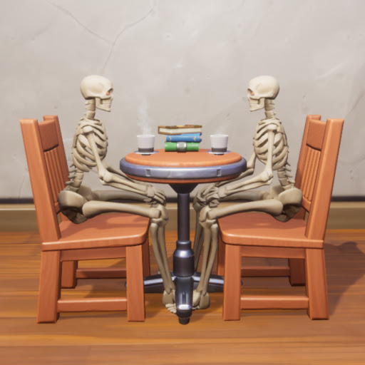 In this example, 2 skeleton meshes are sitting down at a table in a Coffee shop having a discussion. Once the shot is set up, enter full-screen with F11 and take a screenshot.