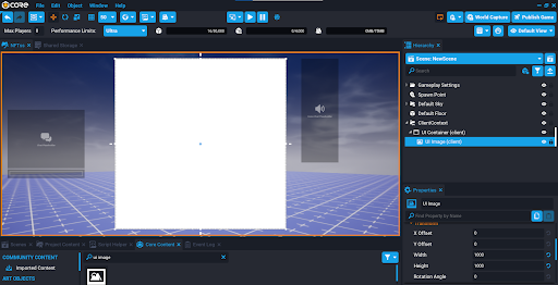In Core Content, search for UI Image and add it to the Client Context in the Hierarchy. This image will be used to display the NFT created. Make sure to have the contract address and token ID of the NFT that was created on OpenSea.