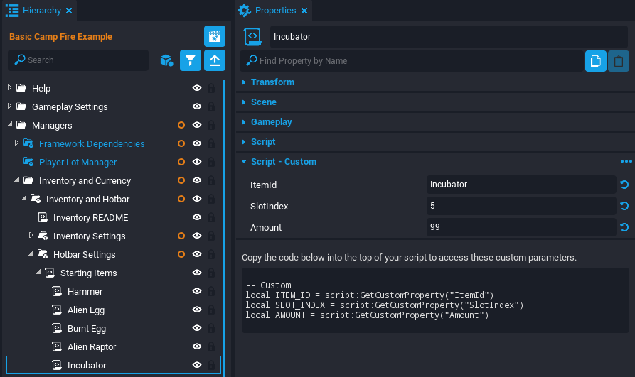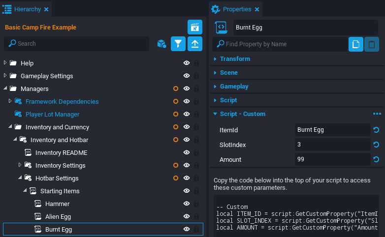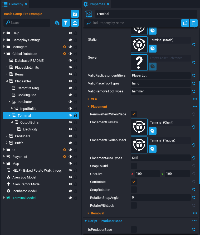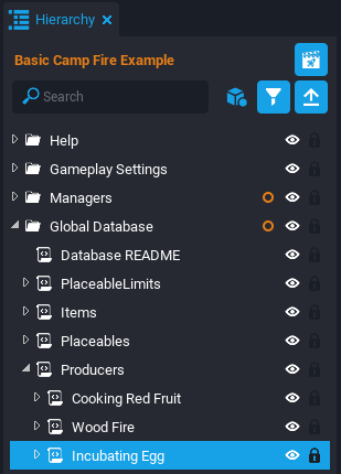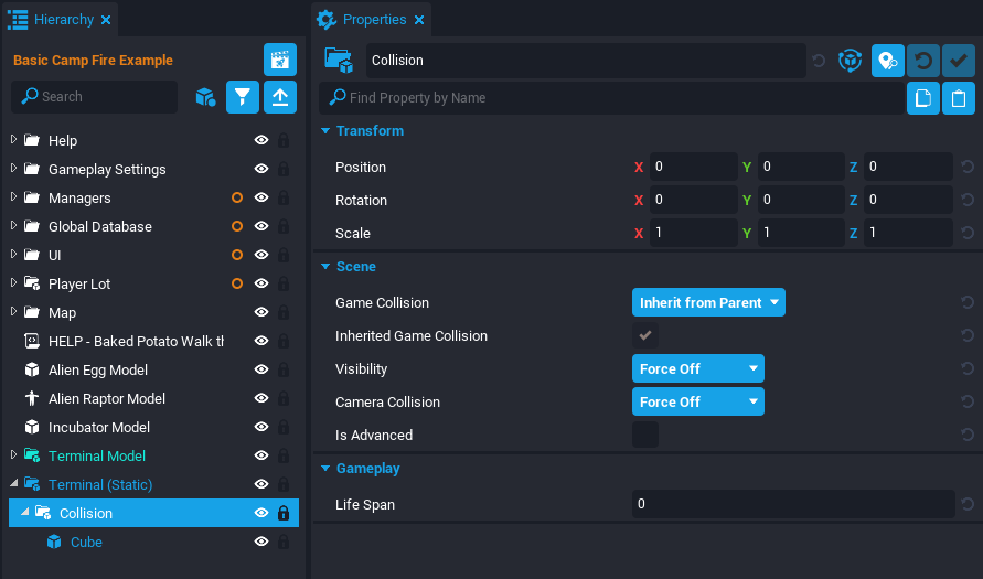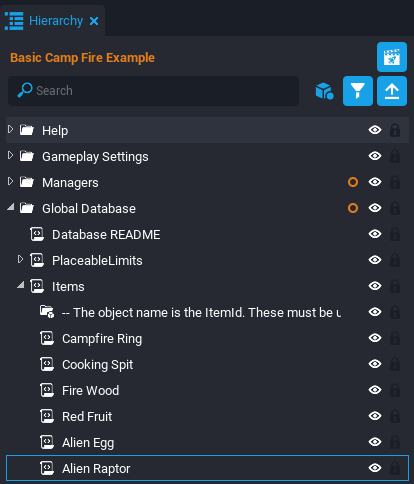 This tutorial will be breaking apart an example scene where the player can light a camp fire and cook fruit on the fire. This tutorial will make a similar Producer that can raise Alien Eggs to become Alien Raptors.