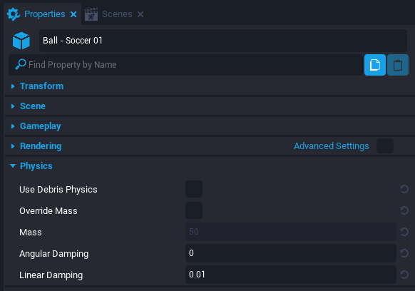Override Mass Toggle to manually change the mass of an object. A default mass is calculated and used if inactive.