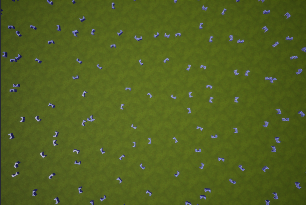 The Distance Between Instances property controls the density of placement for one type of foliage. The higher the Distance Between Instances, the more space there will be between instances of that foliage.