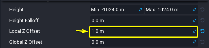 The Local Z-Offset property moves the foliage upwards or downwards based on the local z-axis of the foliage.