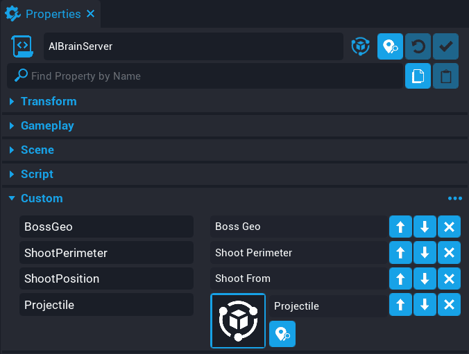 Add Boss Geo onto the BossAIServer script as a custom property and rename it to BossGeo.