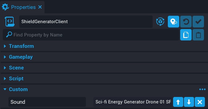 Add the Transition panel onto the PlayerClient script as a custom property. Name the custom property Transition.