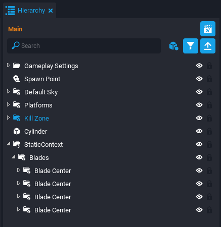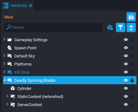 In the Hierarchy, multi-select the MovingPlatform_Server script and Moving Platform (networked) object by holding down Ctrl button while left clicking the mouse. Right click and select the New Group Containing These option. Name the group Moving Platform.