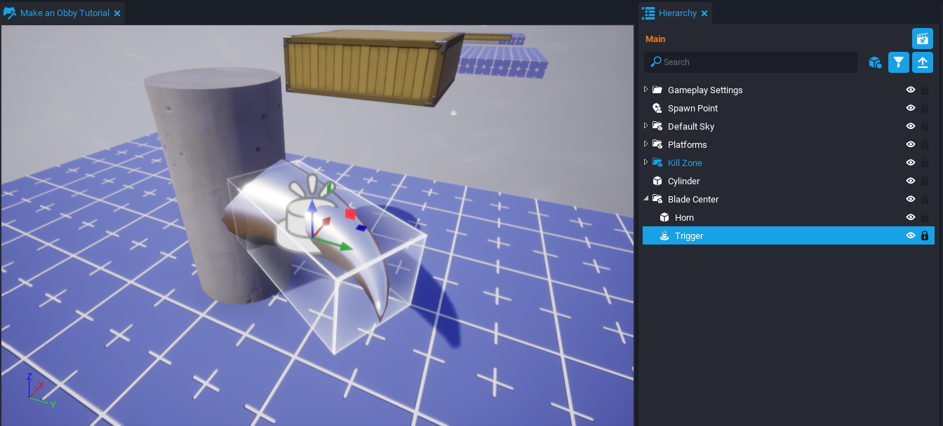 In this tutorial, you are going to make an Obby, which is a platform and obstacle game. The game will have moving, rotating, and shrinking platforms as well as deadly spinning blades. The game will also have a rewards chest that can animate open and close. The reward inside is a flying pet that follows the player.