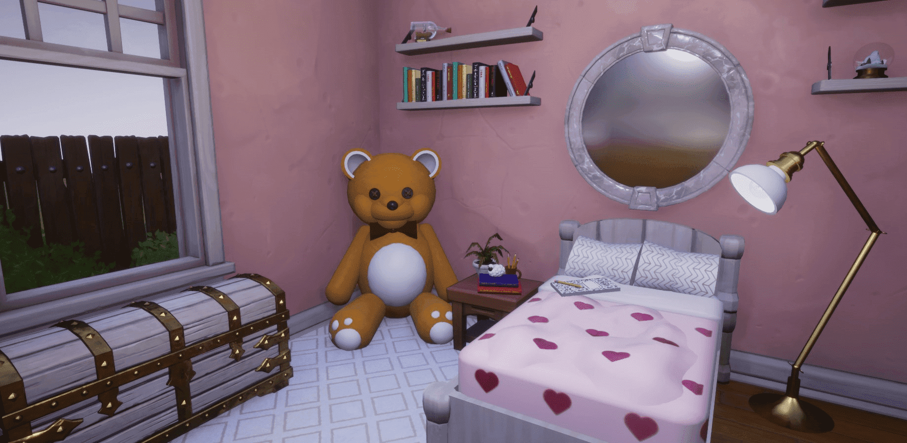 1. Check out the other furniture included with the My Room template and furnish the rest of the room. You can also find more room props in the Core Content tab > Props > Urban > Interior. Search Community Content to find furnishings from other creators or make and upload your own.